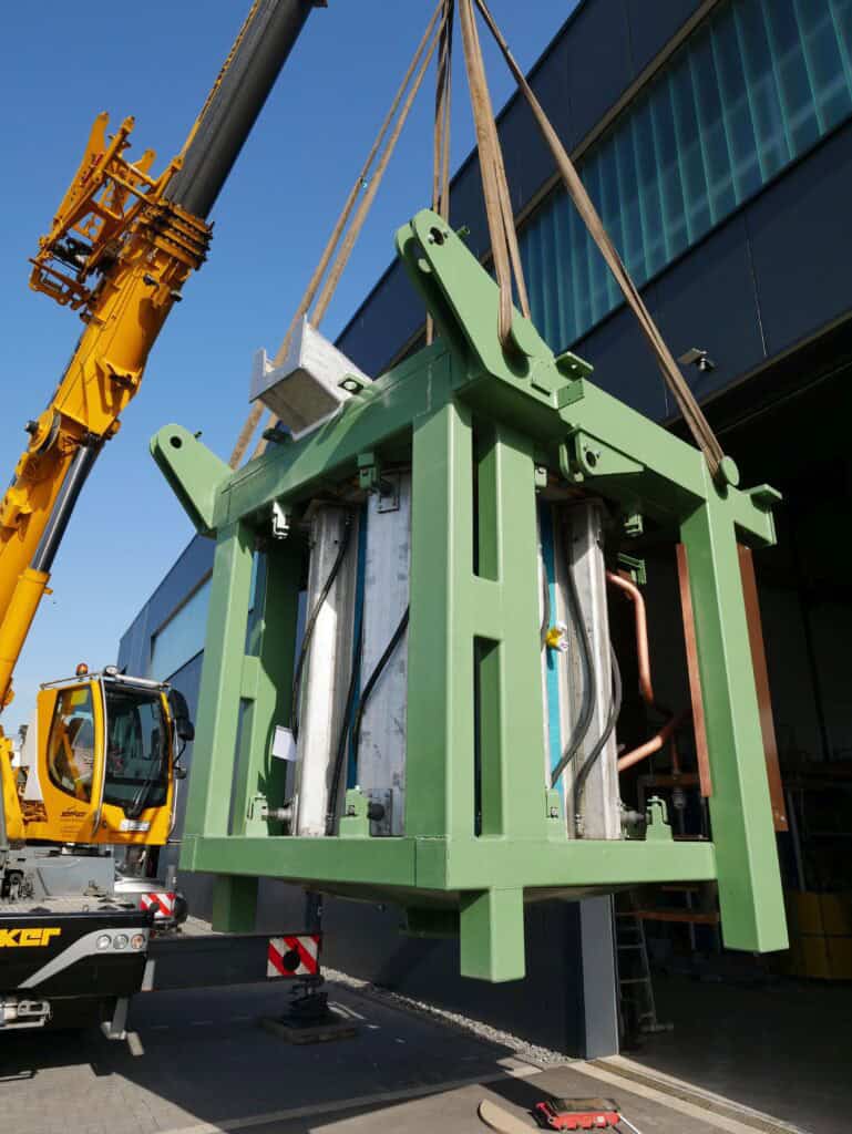 Ein Tiegelofeneinsatz mit einem Gewicht von 13 Tonnen wurde von unserem Team fachgerecht und problemlos instandgesetzt.